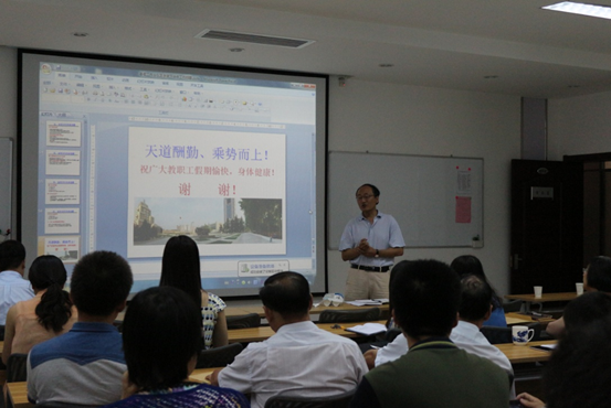 党总支书记张早校教授也发表了讲话。他指出,我校第十二次党代会刚刚开过,在教职工中引起热烈反响,大家感受到学校领导对于学校发展的强烈使命意识与忧患意识,希望西安交通大学先辈们所开创的基业在我们手中得以继续传承,使学校上下充满了正能量。这次暑期工作会议安排在学期末召开,就是希望尽快让全体教职工了解会议精神,为下半年工作做好部署。张早校教授希望所有教职工都借着校第十二次党代表大会召开的东风,鼓足干劲,力争上游,促进线上老虎机游戏网站