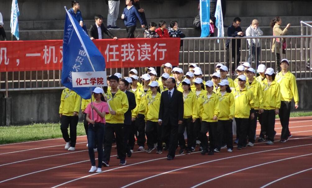 师生积极参与本届校运会,院长魏进家教授、党总支书记张早校教授和部分师生代表参加了开幕式。