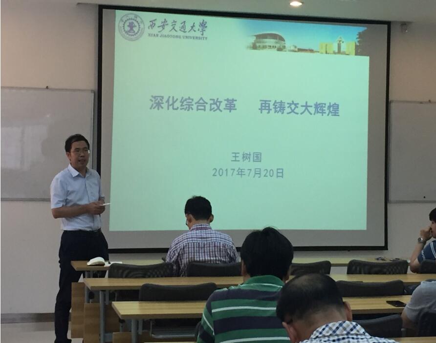 魏进家院长首先传达了暑期工作会议上王树国校长所做的“深化综合改革,再铸交大辉煌”报告内容和精神,重点传达了学校上半年在人才培养、科学研究、创新港建设、绩效改革等方面的阶段性工作成果,以及今后的主要工作目标和改革任务等,并对老虎机游戏