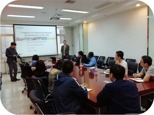 进行学术交流,并对西安交大化工学科建设与发展进行了指导和评价。McMillan教授一直从事纤维素生物炼制和海藻生物炼油等方面的研究及其工业化应用的推广。目前已在秸秆预处理、酶水解、纤维素糖发酵、生物能源及化学品生产等领域累计了25年实践经验。访问期间,McMillan教授做了题为:“Progress on Advanced Biofuels Development in the USA”的报告。McMillan教授的报告主要结合自己在生物燃料上多年研究的经验向我们讲述了美国先进生物燃料发展进展、生物燃料的价值及其生物燃料的转化路径等。作为美国国家可再生能源实验室首席工程师,McMillan教授就自己主要研究方向及相关研究的经历与线上老虎机游戏网站