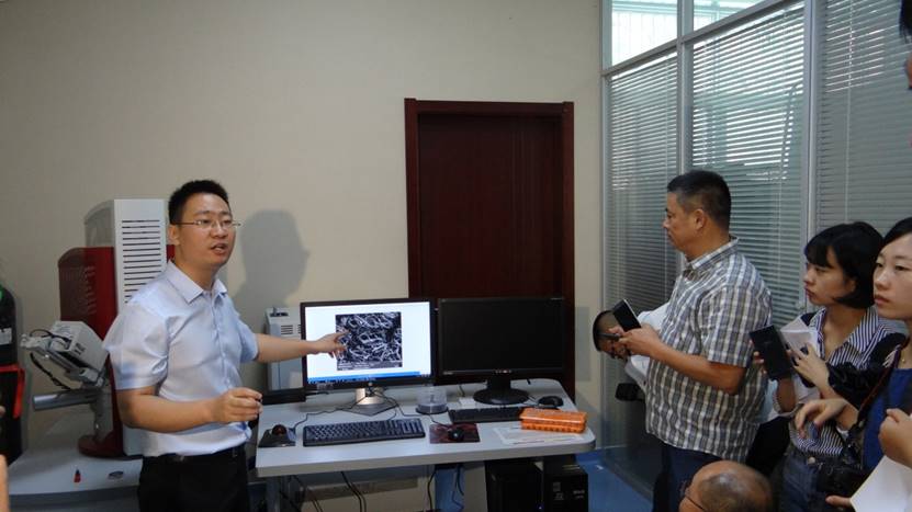 与会媒体就发布成果的转化应用、行业价值和发展前景等问题进行现场提问和热烈讨论。发布会后,各媒体单位先后走进化工实验室,陈鑫教授现场演示扫描电子显微镜在纳米材料表征研究方面的重要作用。