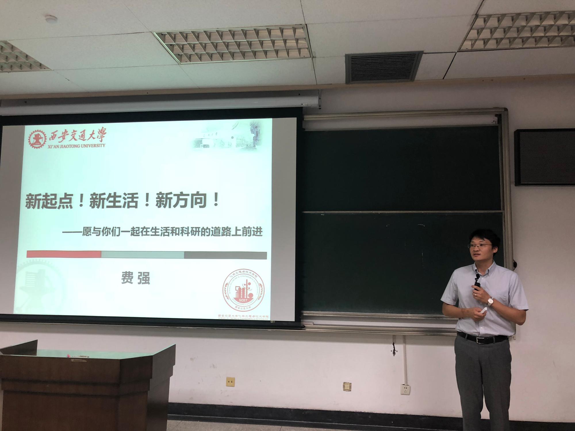 教师代表、学校青年拔尖人才费强教授以“我的生物化工之旅”为主题与在座新生分享了他学术道路上的点滴,从目标、坚持、勤奋、细节、心态和热爱生活等几方面给出了一个科研工作者的经验之谈。“新起点,新生活,新方向!愿与你们一起在生活和科研的道路上前进!”
