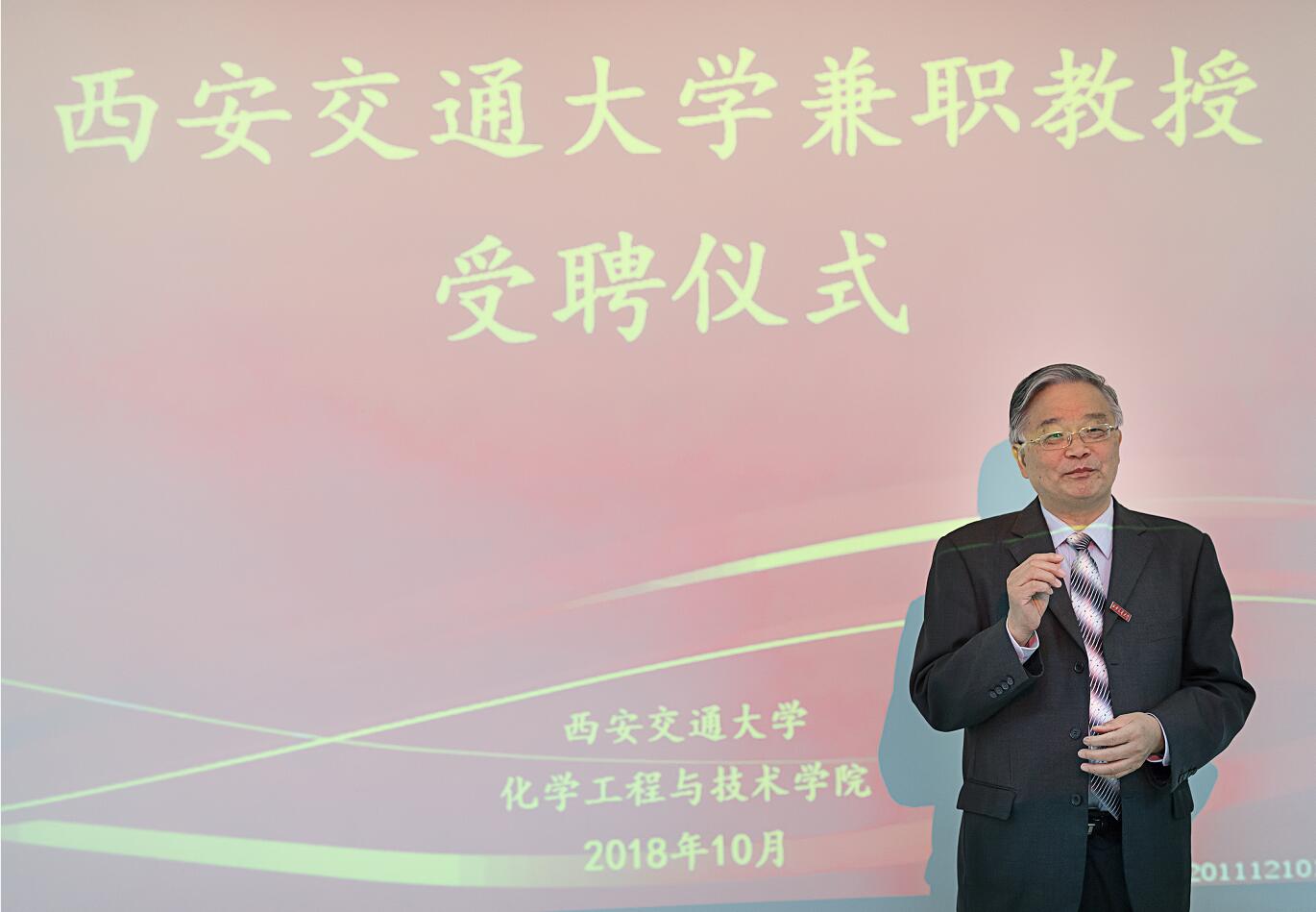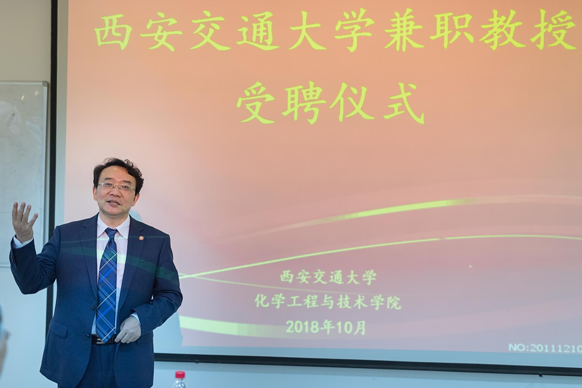 的邀请表示感谢,很荣幸成为西安交通大学兼职教授。毛宗强教授说道,早在2000年就和交大开展了合作;本次来到交大,在受聘交大兼职教授的同时,还与交大共同申报了课题。希望将来进一步加强合作与交流,共同推进氢能领域的发展。