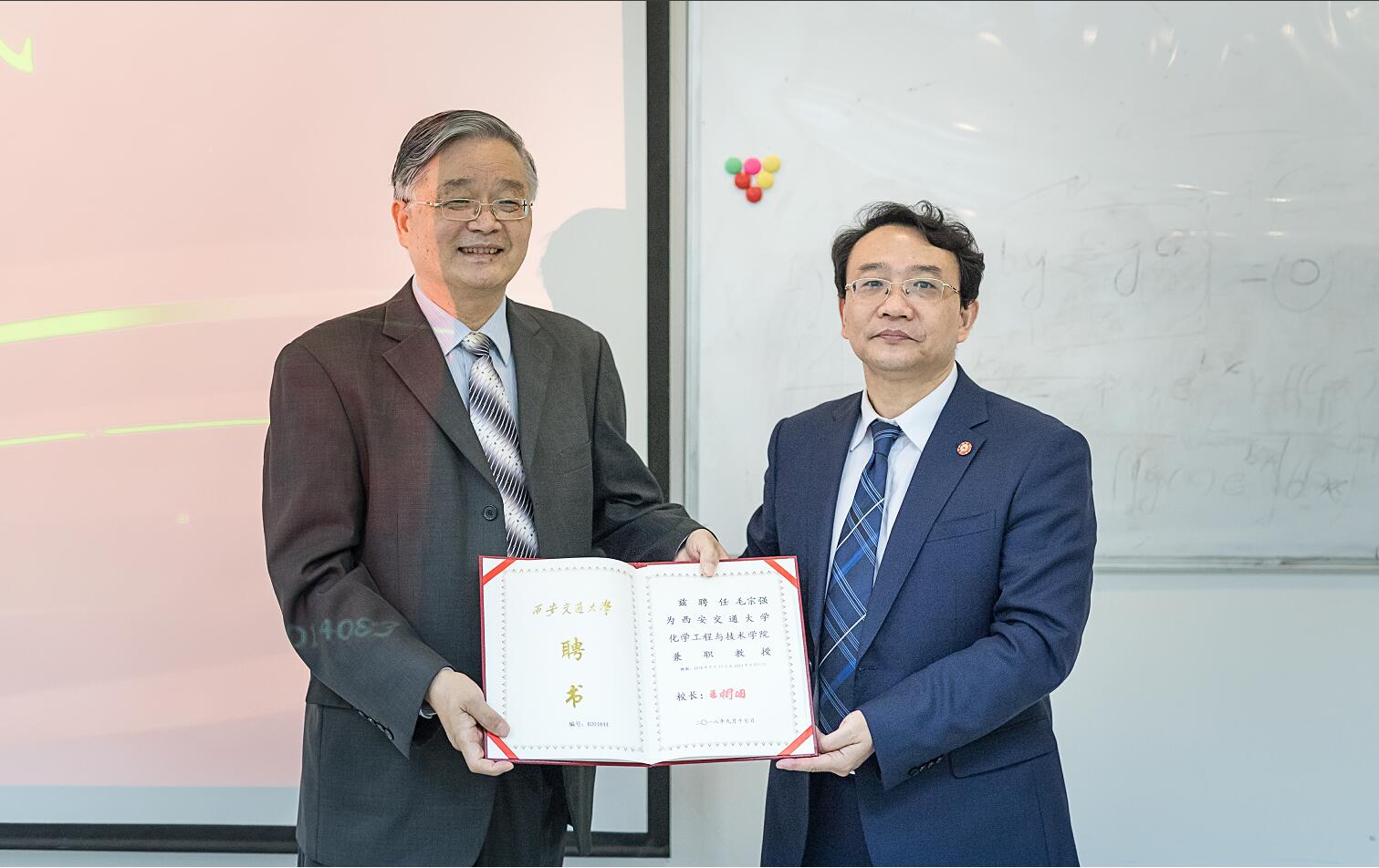 的发展出谋献策,助力化工一流学科建设。随后为毛宗强教授颁发了西安交通大学兼职教授聘书,并为其佩戴校徽。
