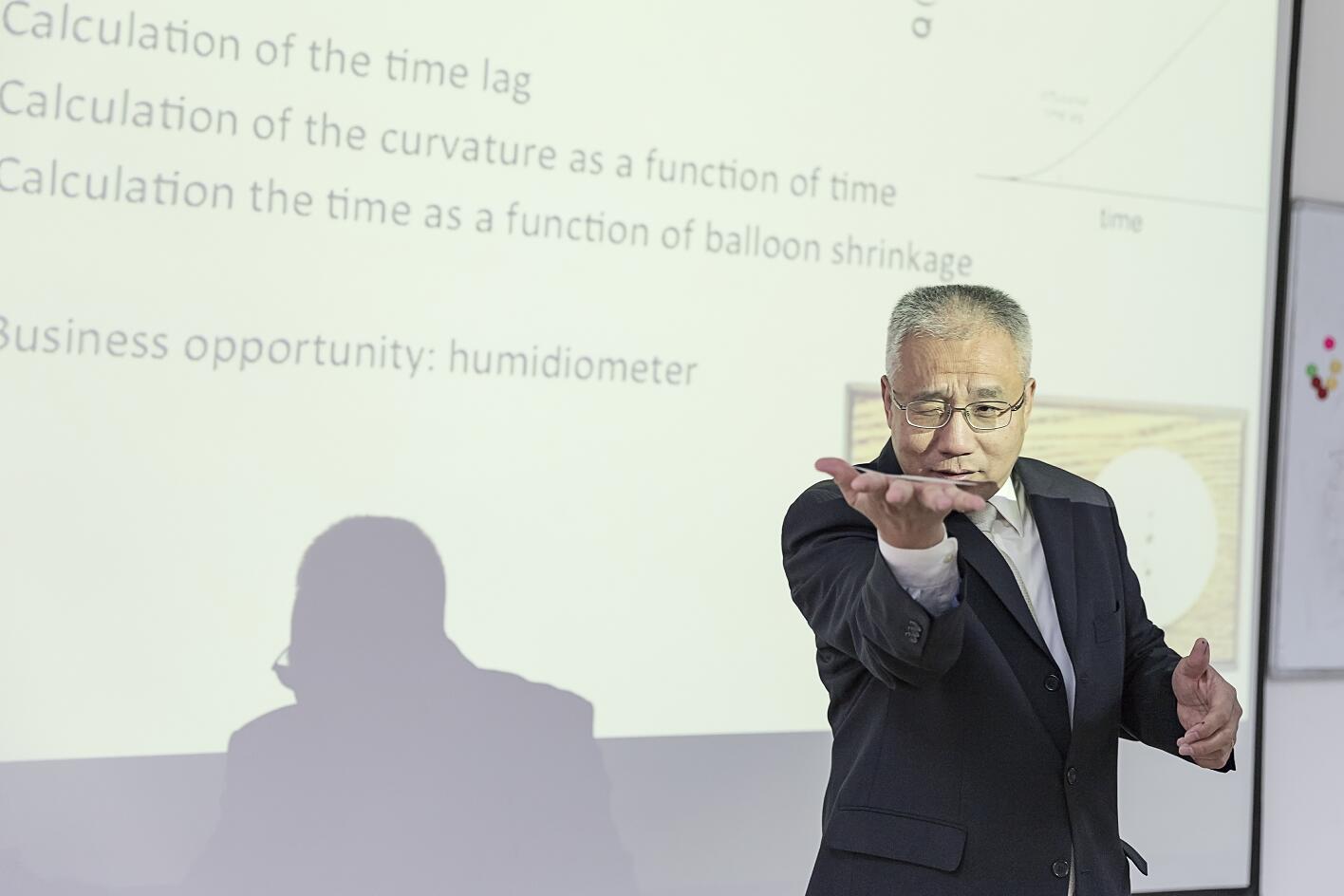 接下来,弭教授通过陈述他在香港多年来从事的众多研究成果,例如利用coffee stain effect(咖啡渍效应)构筑生物电极传感器,利用zone melting method(区域熔融法)去除黄磷中的砷杂质制备电子级磷酸,利用lotus leaf effect(荷叶效应)制备超疏水或超亲水的自清洁表面等。这些研究都是弭教授从自然和生活中获得灵感,并结合自身化工的背景而做出的卓越成果。以上研究成果或通过专利技术转让,或通过技术共享开发产品,最终都实现了很高的经济效益。弭教授的讲座生动有趣,在场的师生纷纷表达这场别开生面的讲座为大家带来了巨大的收获。