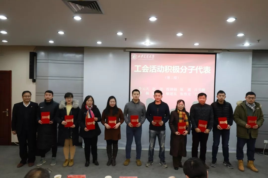 获得首届“示范职工小家”分工会集体荣誉表彰和奖励;侯雄坡、邓建强和方涛撰写 的“高校工会基层组织进一步‘增三性’问题研究”获得2018年度工会理论调研论文一等奖表彰和奖励;女工委员林丽萍获得“优秀工会干部”称号,分工会行政小组长牛元天获得“工会活动积极分子”称号。
