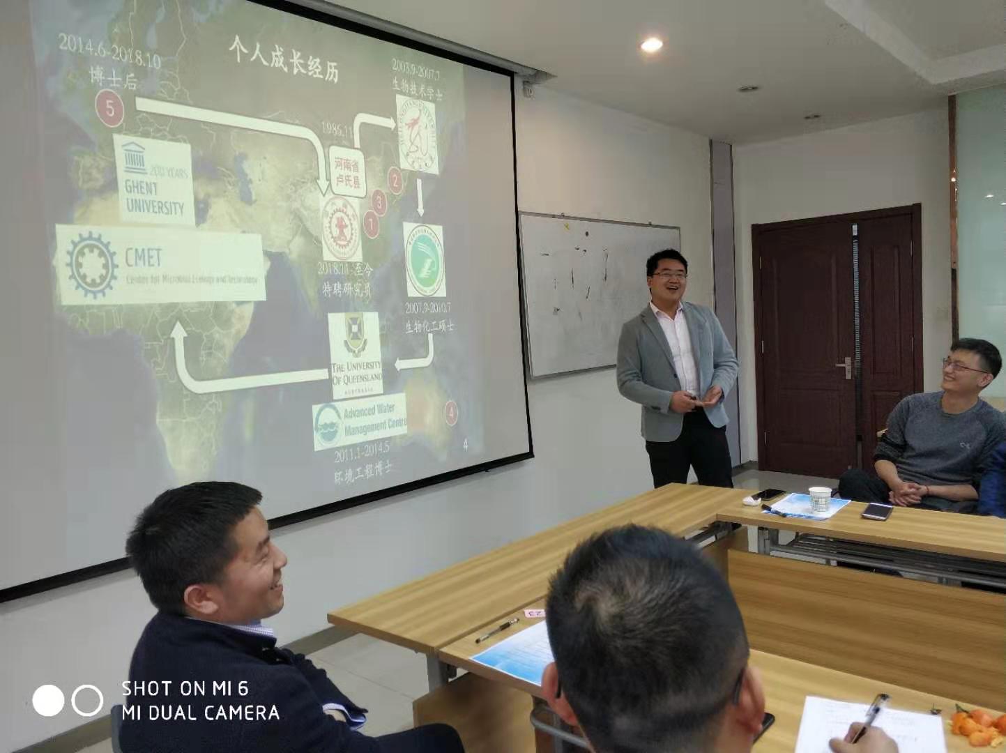 唐伟教授以《唐伟老师的“严肃”学术报告》为题,幽默风趣地分享了自己从学生时代到为人师的心路历程。郭坤研究员作了《微生物发电与微生物储电技术》的报告,他自赋的打油诗“一朝遁入科研门,从此不再正常人。加班熬夜是常态,满脑基金和论文”,引起了大家的共鸣。
