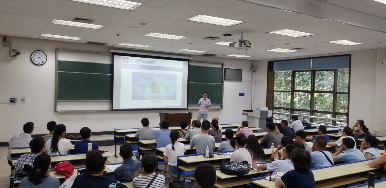 沈人杰副书记则为家长们分享了对化学工程的理解,用图文并茂的方式告诉大家什么是化工、学了化工能做什么,并对近几年化工专业的毕业生去向一一进行了展示,消除了家长们对化工的误解。