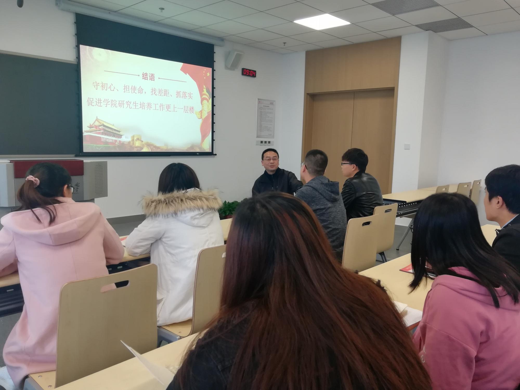 博1969党支部在创新港19-3111教室组织开展了“不忘初心、牢记使命”专题党课活动,支部全体党员以及部分硕士生参加,活动由院分党委统战委员、研究生教学副院长方涛老师主持。