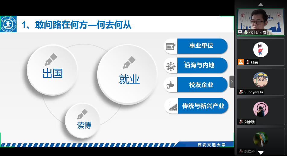 于2020年5月15日召开2021届研究生就业动员线上主题班会。班会由化机18级班长张亮主持,老虎机游戏