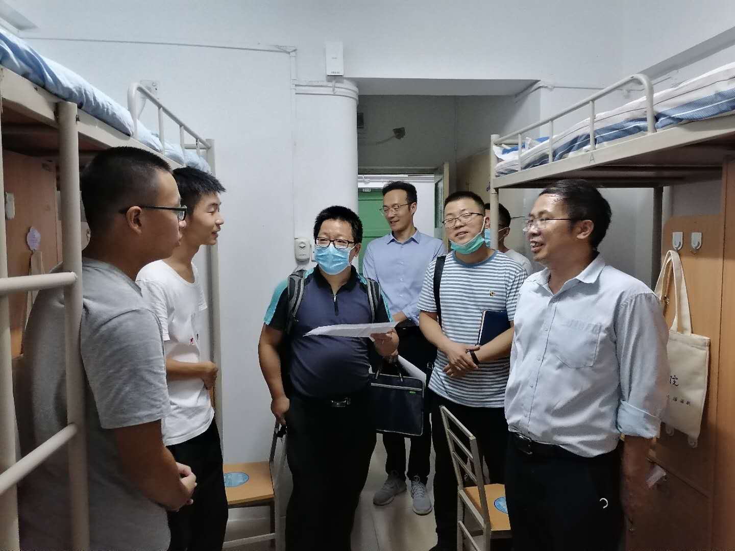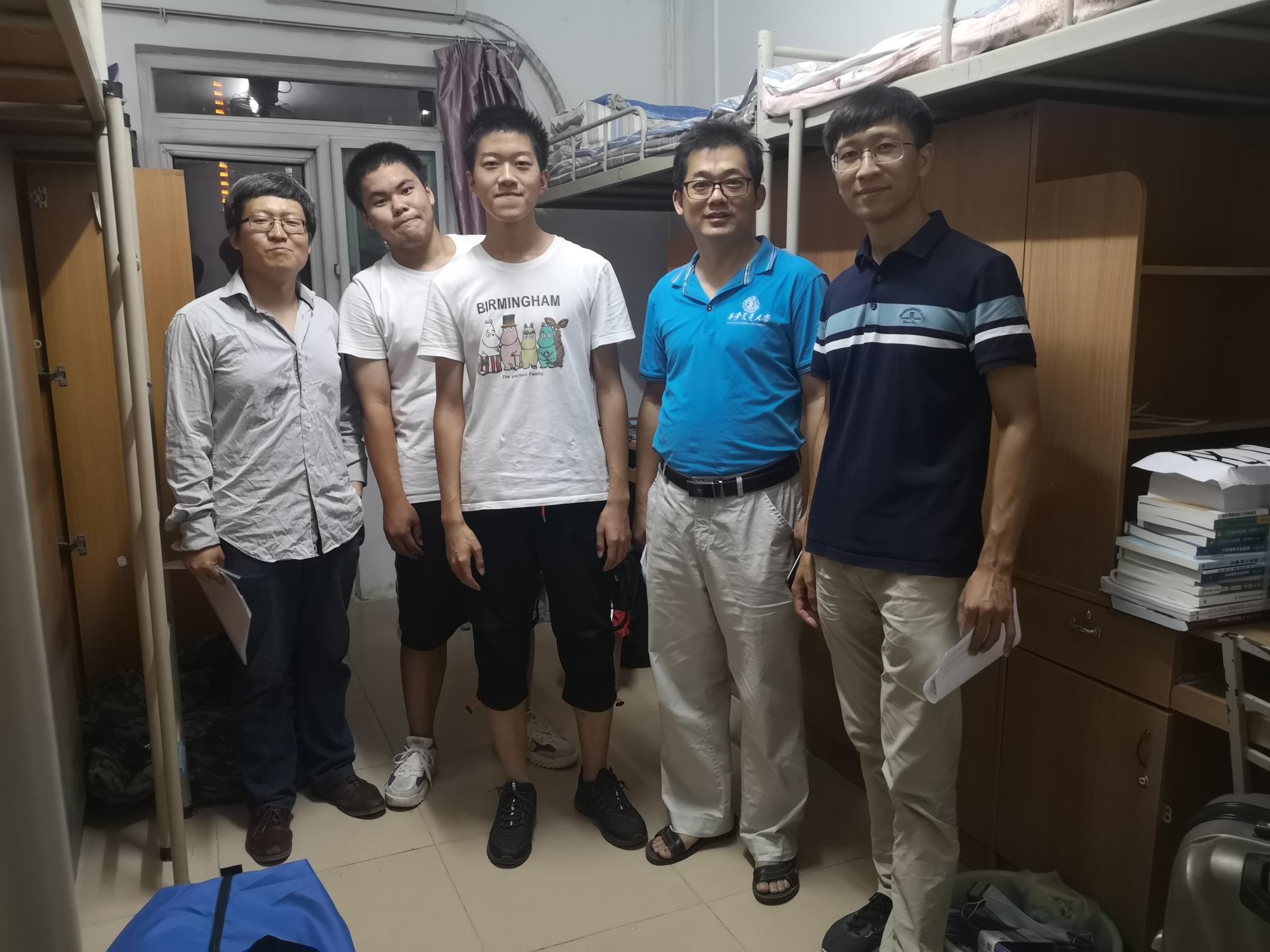 魏进家院长、沈人杰副书记、李云副院长与新生班主任等一起到宿舍看望了2020级本科生新生。