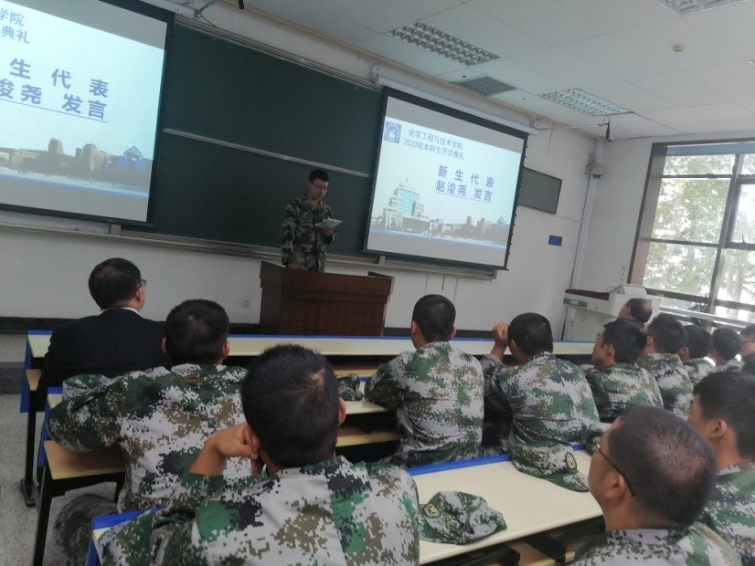 表示感谢和欢迎,并以中国在抗击肺炎疫情中取得的胜利为引子,勉励全体新生要志存高远,践行西迁精神,拼搏现在,成就未来!
