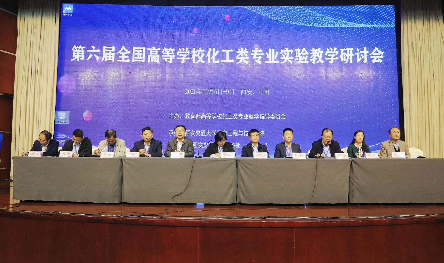 承办的第六届全国高等学校化工类专业实验教学研讨会在西安隆重召开。化工教指委主任委员、天津大学副校长张凤宝教授,副主任委员中北大学刘有智教授,秘书长夏淑倩教授,辽宁石油化工大学副校长王海彦教授,化工专业认证委员会秘书长唐旭华教授等15位教指委委员、认证委员会专家、国家教学名师,以及来自全国113所高校的约300位实验教学领域的专家和教师参加了本次会议。西安交通大学党委副书记赵昌昌和教务处处长王秋旺出席会议。同时,本次会议还首次采用网络直播形式与全国的学者进行分享和交流。