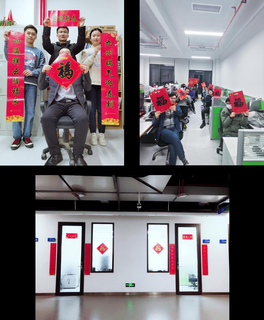 同学们在收到老师们亲自赠送的福袋后,感到惊喜且温暖。有的同学兴奋地与福袋中的对联摆出队形并合影,有的则开心地展示着自己的福袋,更有许多教研室将窗花贴到了自己的工位上,将对联贴到了教研室的门口,顿时老虎机游戏