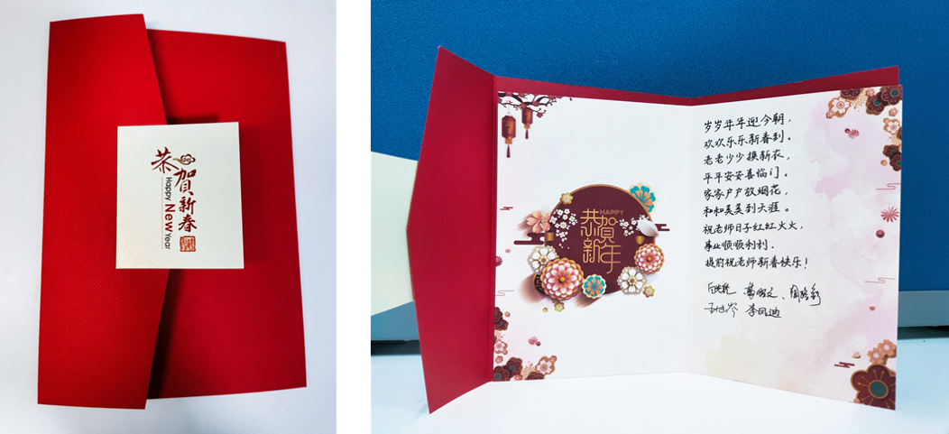 除了对联外,同学们还给老师们送上了非常精美的新春贺卡: