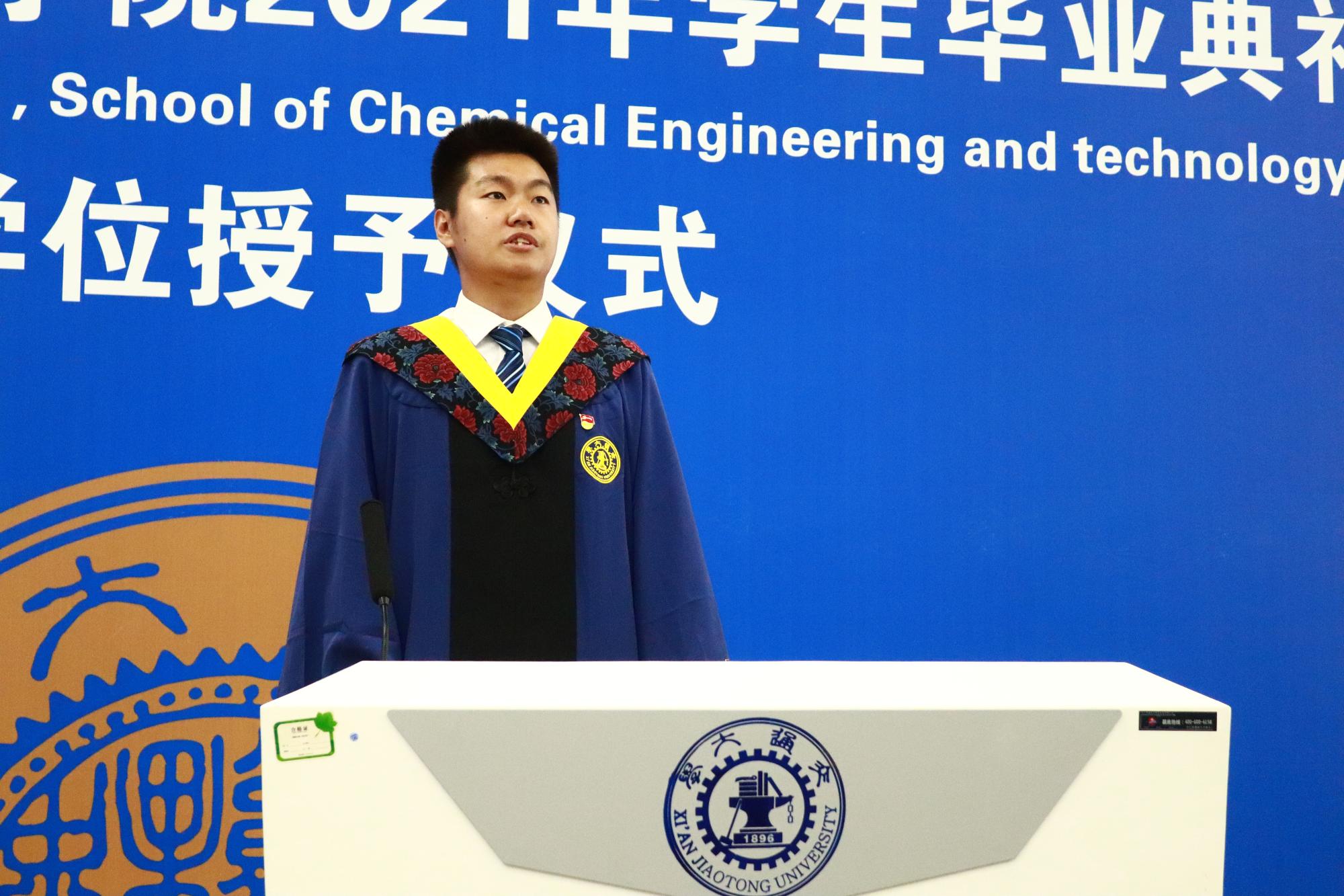 毕业生代表们的发言道出了离别的心声。本科生吴雅恬提到,四年的大学生活或紧张充实或迷茫局促,四年的辉煌或暗淡已成过往。希望同学们不忘初心,以长远和坚毅的目光,带着再出发的勇气和自信,直面不确定,不说再见,在更好的未来遇见。研究生代表刘彦铄在发言中分享了三个关键词:感恩、成长、奉献。他号召毕业生传承发扬西迁精神,到祖国最需要的地方建功立业。“再见化工楼,再见康桥苑,愿各位同学为母校争光,祝交大的明天更加辉煌!”