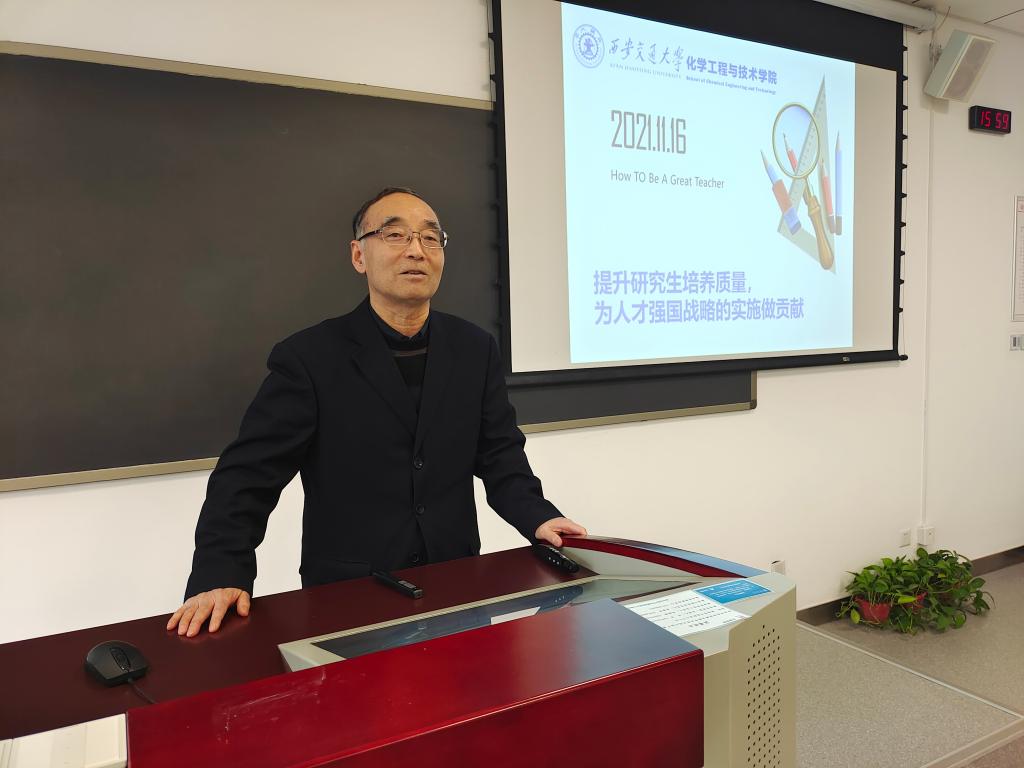 资深导师杨伯伦教授作了研究生指导经验专题交流,杨老师回顾了自己的学生培养情况,并从专业素养提升、因材施教作好选题、以及全链条培养质量保障等四个方面向在座导师分享了如何提高研究生导师的指导能力。与会导师就各自培养过程中的问题和困惑进行了交流讨论。