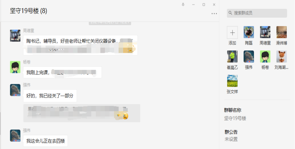 留守教职工专门成立“坚守19号楼”教工群,除了关闭各教研室实验设备,关水关电,更重要的是做好定期开展安全检查。
