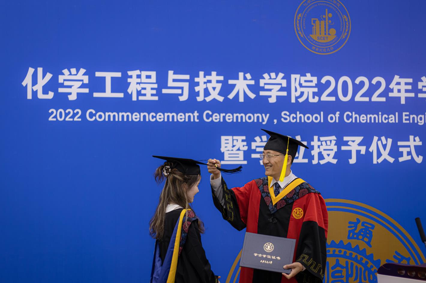 2022届博士生、硕士生和本科生颁授学位证书并合影留念。相聚终有时,后会亦有期。新一批化工学子胸怀国之大者,勇担国家使命,已踏上新的征程,到祖国最需要的地方建功立业。