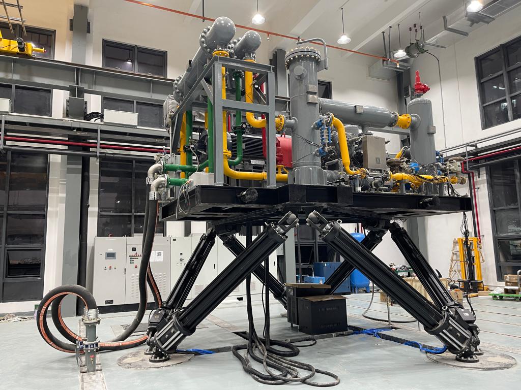 “深海一号”是由我国自主研发建造的全球首座10万吨级深水半潜式生产储油平台。大型往复式天然气压缩机则是其天然气集输的心脏,但“深海一号”所处的南海是台风多发海域,工作环境恶劣。恶劣海况下半潜平台运动对压缩机可靠性的影响机理亟待研究。但国内现有相关理论研究薄弱、缺乏能模拟海洋平台运动的压缩机综合实验平台,使国内厂家难以形成可靠的分析、设计方法,导致国内产品可靠性低,不能满足半潜平台生产要求,机组和成橇长期依赖进口设备。