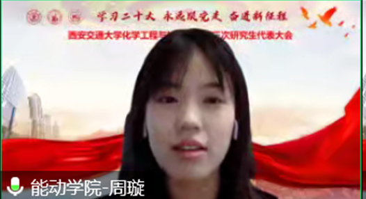 团委向大会的召开表示热烈祝贺,他指出,党的二十大胜利召开之际,此次研究生代表大会意义重大。在以往的工作中,化工研究生会取得了优异的成绩,希望化工研究生会继续认真学习贯彻习近平新时代中国特色社会主义思想,增强服务意识、提高服务水平,认真理顺机制、研究工作模式,加强作风建设、切实服务同学,不断开拓工作的崭新格局,做出应有的贡献!