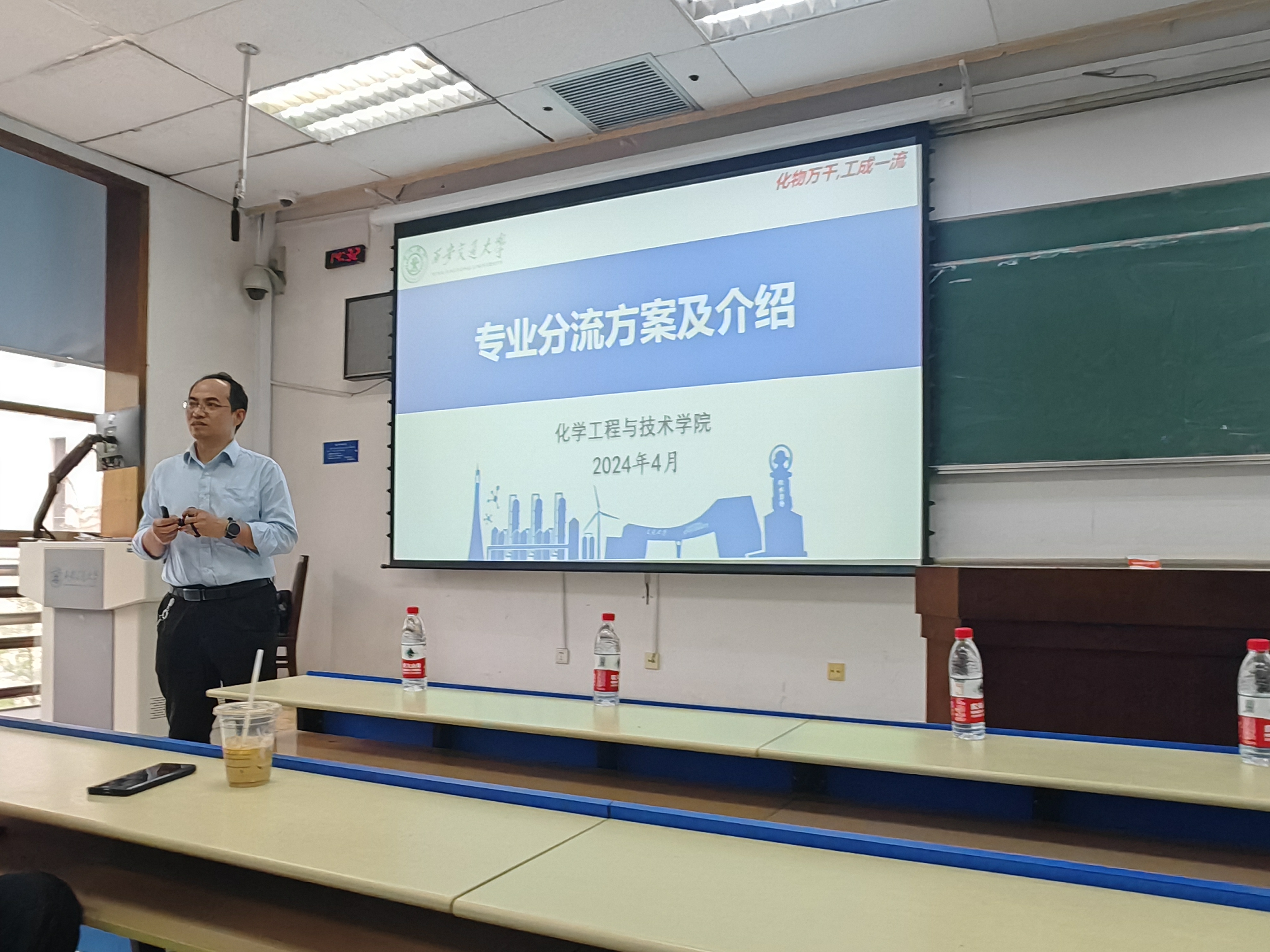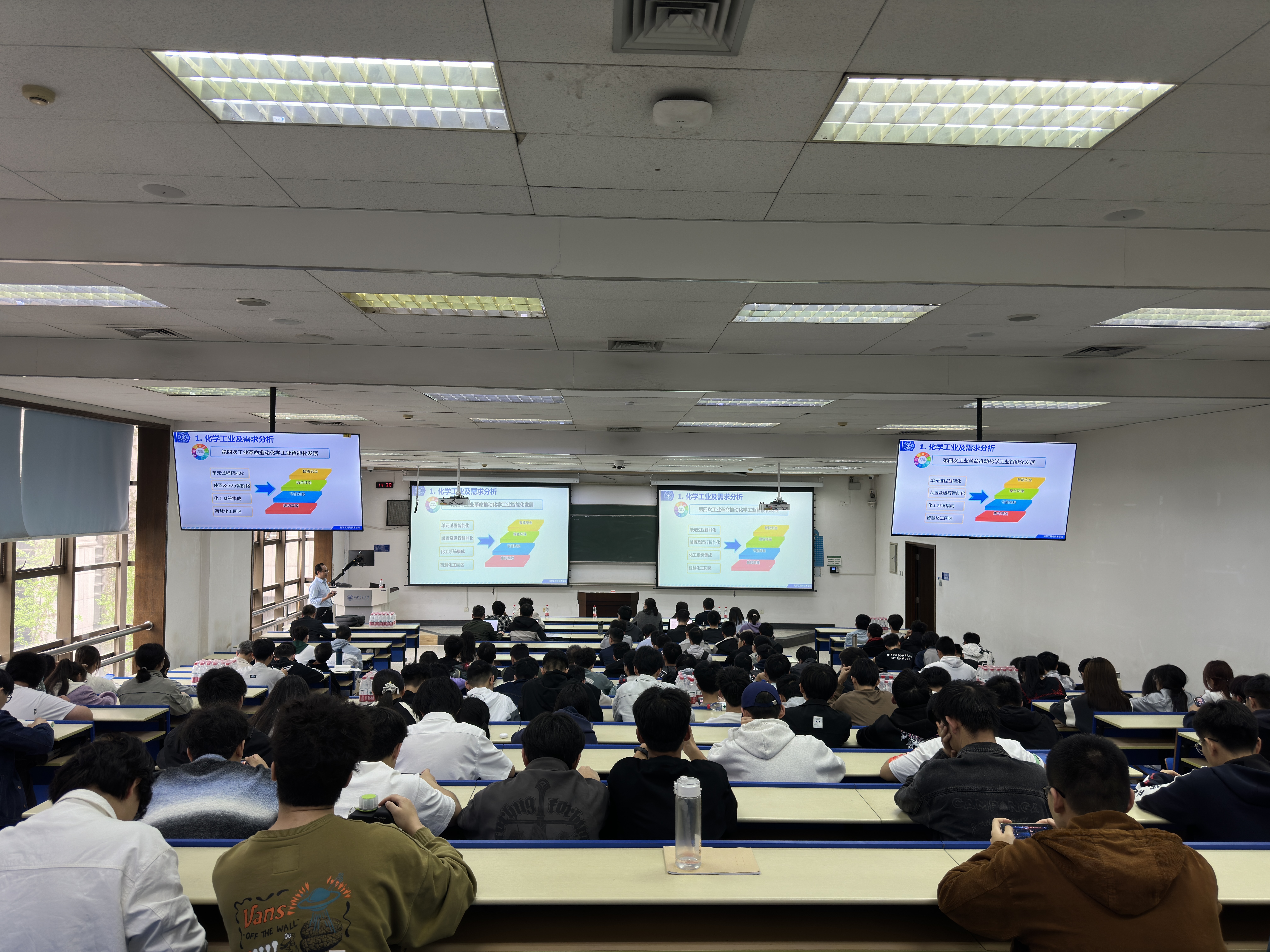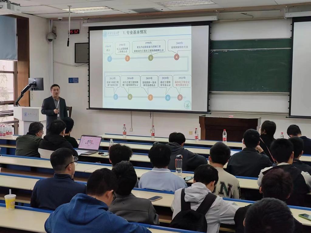 人才培养体系及专业建设方向出发,深入浅出地解读了化工专业和装备专业的培养方案与课程体系。此外,他着重介绍了化工专业新设方向:智能化工。他指出传统化工行业正在转型升级,新兴的绿色化工行业将与人工智能、互联网等新兴技术交叉融合,实现智能化工。他分别从专业需求调研、就业及职业发展等方面进行了讲述,多层次激发同学们投身化工学习研究的兴趣。