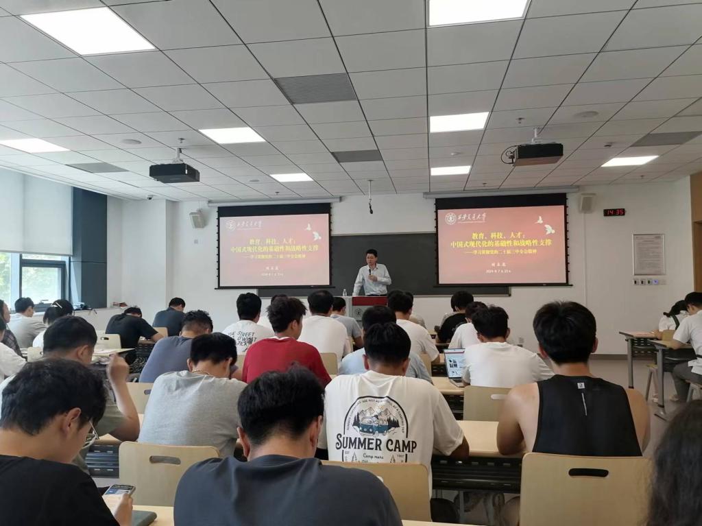 刘占虎教授做“教育、科技、人才是中国式现代化的基础性、战略性支撑——学习贯彻党的二十届三中全会精神”主题讲座。院中心组成员、党支部书记、党团干部近80人与会。