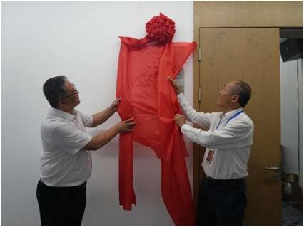 院长杨贵东、院党委书记苗晋英、副院长余云松、副书记陶磊、院郁永章教育发展基金会秘书长张早校、校友李成刚等参加揭牌。