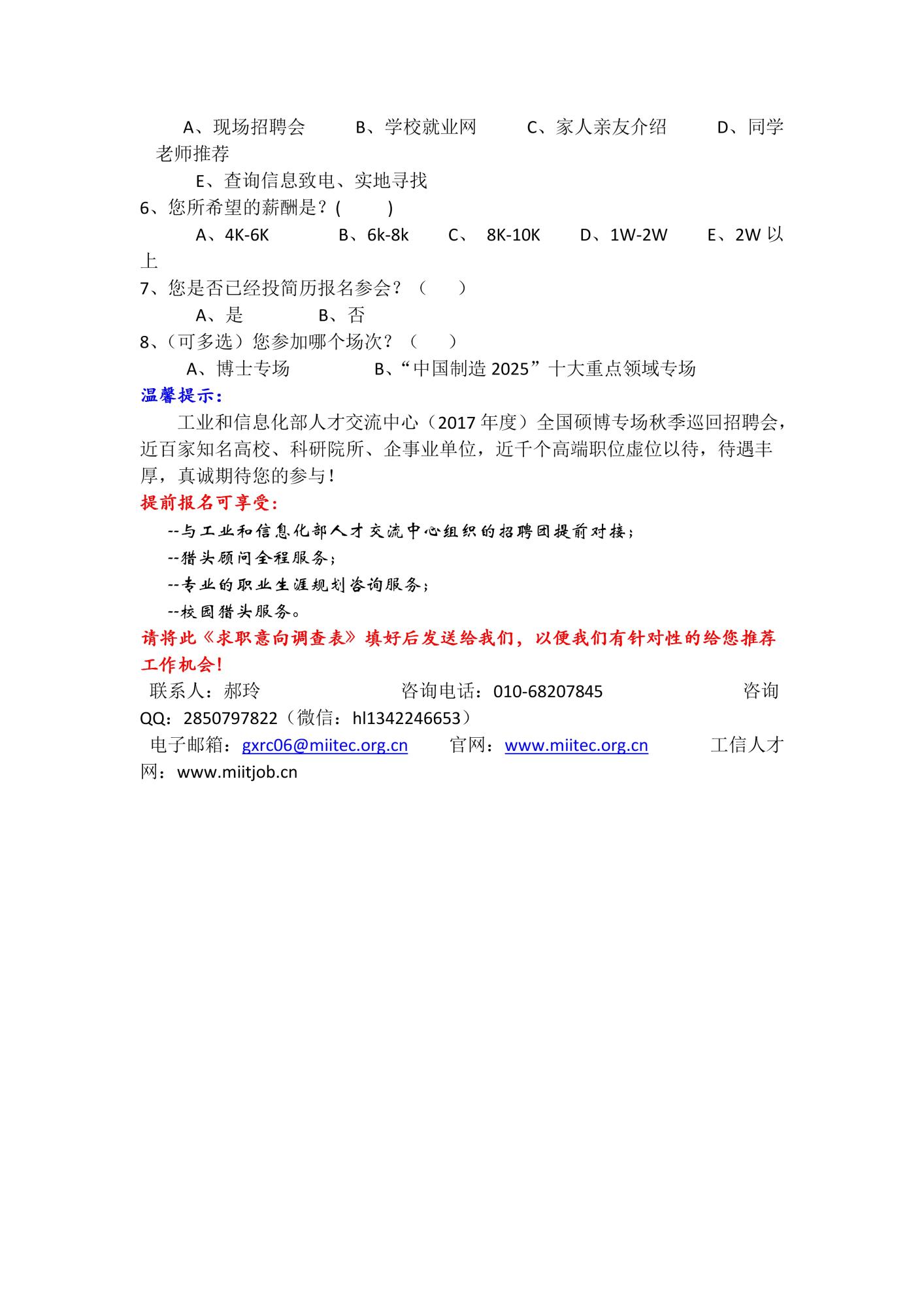 工业和信息化部人才交流中心(2017年度)全国硕博专场秋季巡回招聘会
