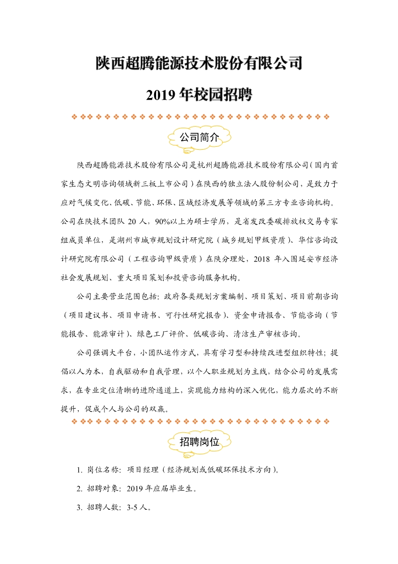 陕西超腾能源技术股份有限公司2019年校园招聘
