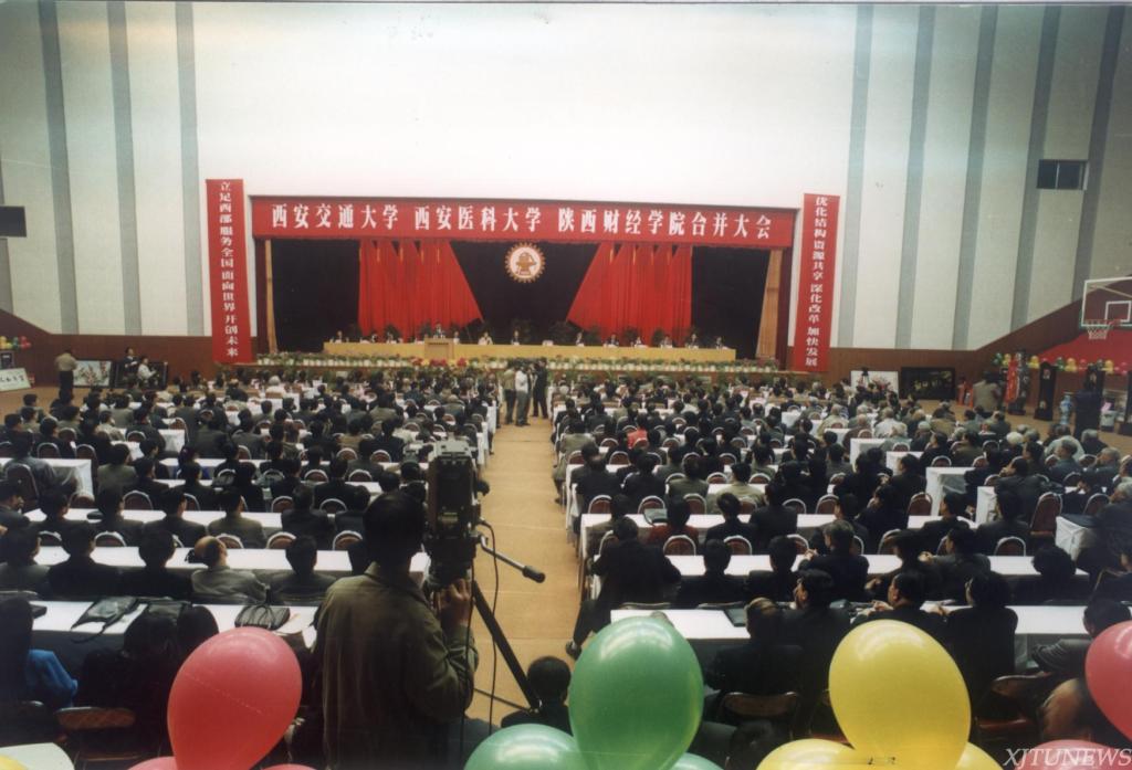 与西安交通大学三校合并大会在思源学生活动中心举行,教育部、卫生部、中国人民银行、陕西省和西安市主要领导出席了大会。三校合一是西安交通大学发展史上具有里程碑意义的一件大事,是面向新世纪,为把西安交通大学建成世界知名的高水平大学而采取的一项重大措施。根据教育部和中央首长的讲话精神,合校采取实质性的合并原则,一步到位,完成领导、法人、管理机构、资源配置和规章制度五个统一。合校采取先融合,后优化的步骤进行。合校后,我校学科门类由此前的7个增加到9个,博士学位授予专业由之前的40个增加到83个;博士后流动站由之前的11个增加到13个。