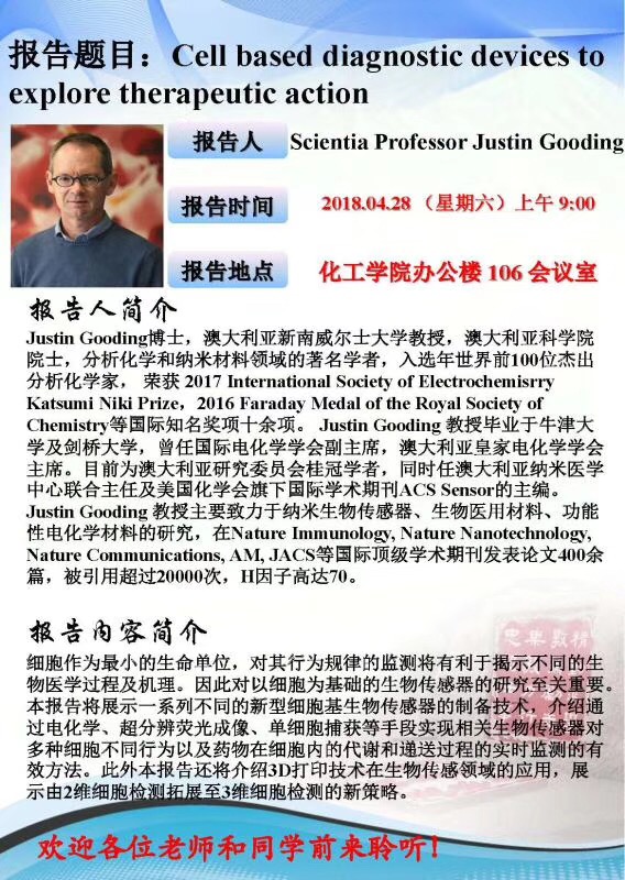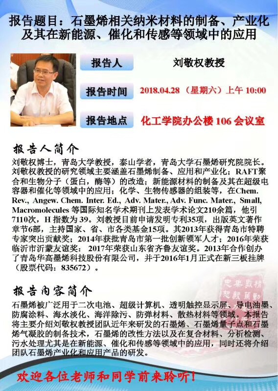 04月28日澳大利亚科老虎机游戏 院士Justin Gooding、青岛大学石墨烯研究院院长刘敬权教授讲座