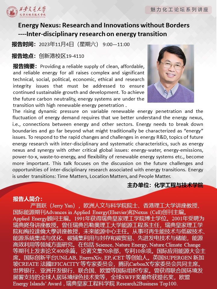 报告时间 2023年11月4日9:00-11:00 报告地点 创新港校区19-4110