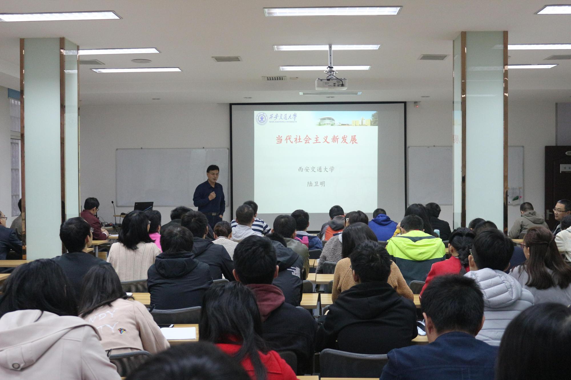 “什么是社会主义?”、“什么是科学社会主义?”、“什么是中国特色社会主义”,报告伊始,陆卫明教授接连提出了三个问题,紧接着围绕这三个问题从科学社会主义的价值目标与基本原则、社会主义运动的发展历程、当代中国特色社会主义模式及主要特征及开启新时代中国特色社会主义的新征程四个方面进行了全面解答。