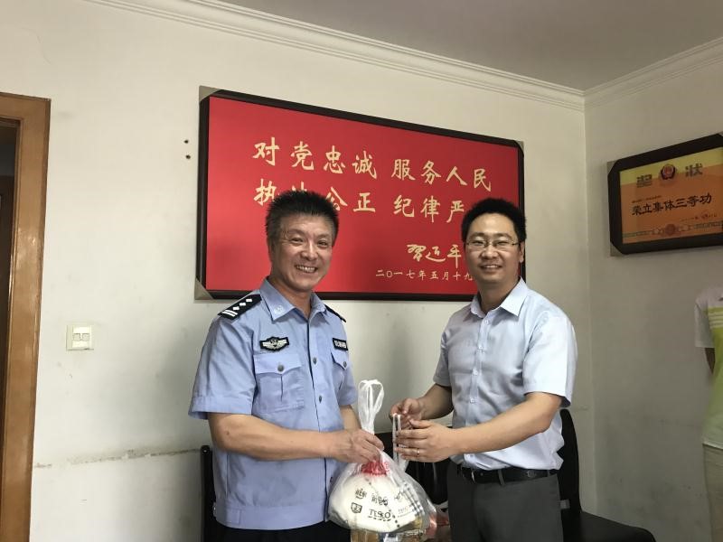 分党委副书记沈人杰老师以及院长助理陈鑫教授的带领下,化工17级党支部到西安市公安局碑林分局禁毒大队开展了以“送清凉”为主题的慰问活动,受到了禁毒大队副大队长陈选宏警官等民警的热情接待。