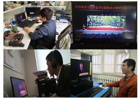 为深入学习贯彻习近平总书记重要讲话,切实把思想和行动统一到总书记重要讲话精神上来,5月9日,西安交通大学召开贯彻落实习近平总书记重要讲话精神全校工作会。化机系教工党支部组织党员在线观看直播。