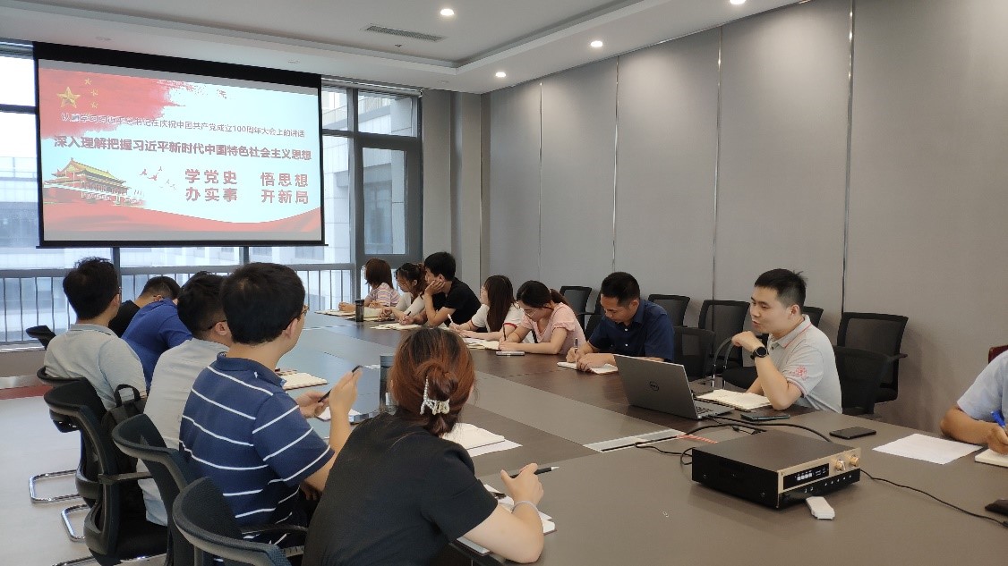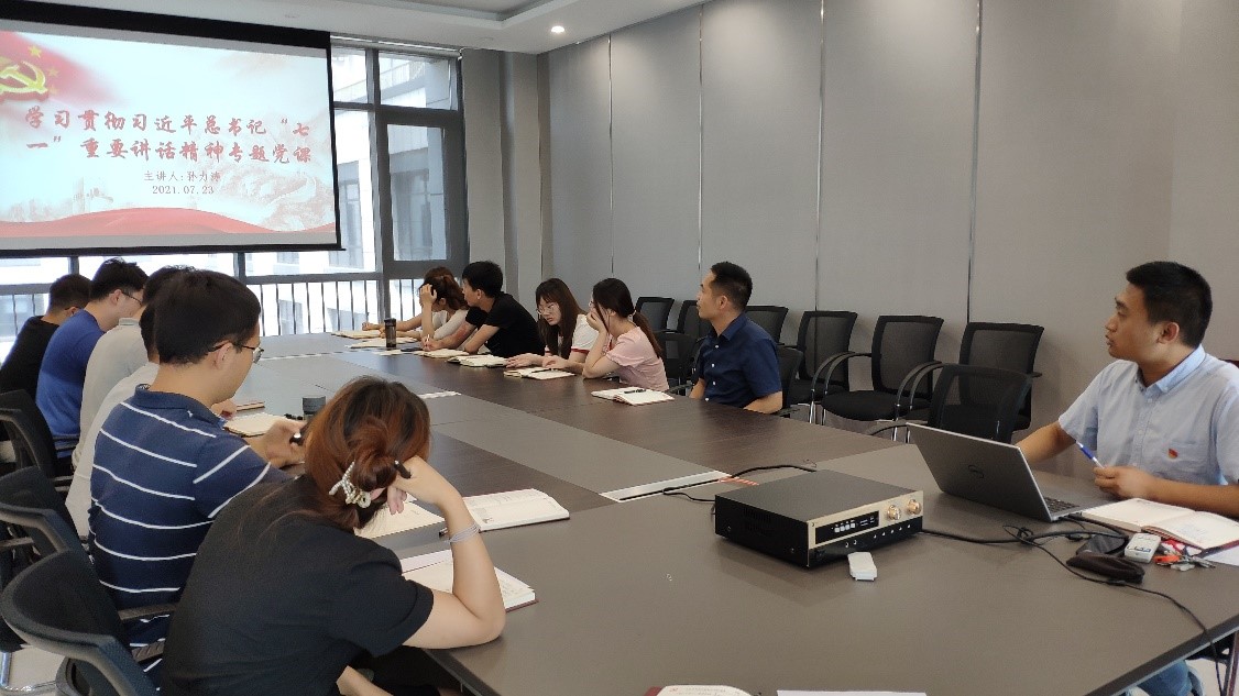 首先,党支部向全体党员汇报了近期的党支部工作,党支部成立以来,积极开展学习,响应上级号召,为群众办了许多实事。之后分党委委员陶磊书记为同志们上了一节生动的党课,带领我们认真学习了习近平总书记在庆祝中国共产党成立100周年大会上的讲话,使大家深入理解把握习近平新时代中国特色社会主义思想,鼓励大家学党史,悟思想,办实事,开新局。