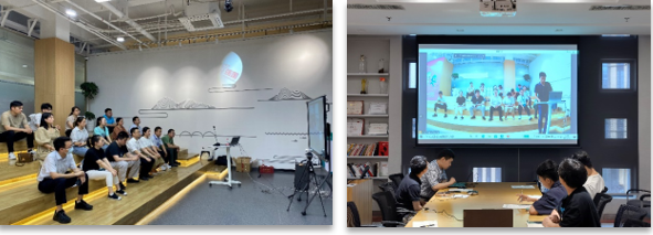 相关科研成果介绍。杨庆远就MOF材料的研究进行讲解,介绍了实验室掌握的关键技术设备,并展示了MOF材料在氢的存储、提纯及碳捕集等方面的应用成果和广阔前景;滑纬博以“下一代二次电池关键材料及机理研究”为题,介绍了课题组在电极材料开发、电化学反应机理与先进原位表征等领域的研究。