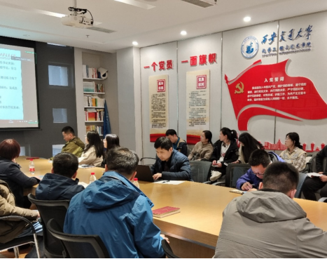 党委副书记陶磊传达了学校党委党建工作部署安排,要求全体书记在支部工作中要及时掌握师生思想动态,积极关注国内外的时事,了解师生心理健康及需求,在思想上要用习近平新时代中国特色社会主义思想武装头脑,切实提高政治站位。接着对各支部开展的工作进行了点评。