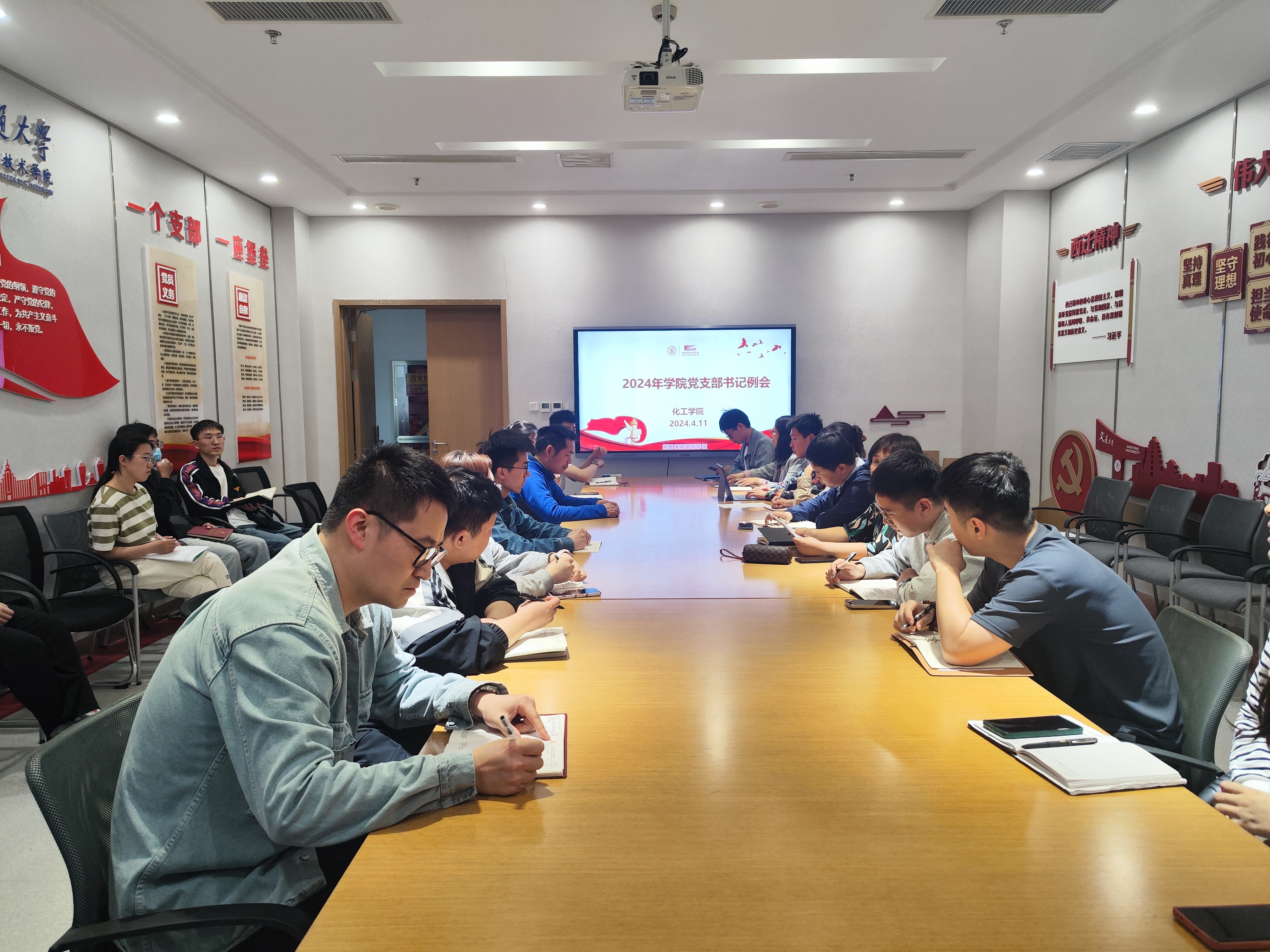 分党委秘书严辉英主持,分党委书记苗晋英、副书记陶磊及全体党支部书记参会。