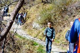 深秋时节,天高气爽,阳光明媚。早上9点大家如约集合,经过一个半小时的车程来到终南山景区。山下漫山遍野的红叶,如诗如画,让人心驰神往。爬山途中迂回曲折的山石古道,奇伟壮丽的层峦叠嶂,连绵不断的高山草甸,醉人的艳阳和清新舒爽的空气,带给老师们应接不暇的美景和回归自然的愉悦。老师们一边饱览深秋的大自然,一边聊天拍照合影;有的随手捡起路边的怪石仔细端详,有的摘上一朵小花装扮霓裳。在周日阳光的午后,大家其乐融融,尽情地在这天然氧吧中畅享时光,完全忘记了往日的疲惫。