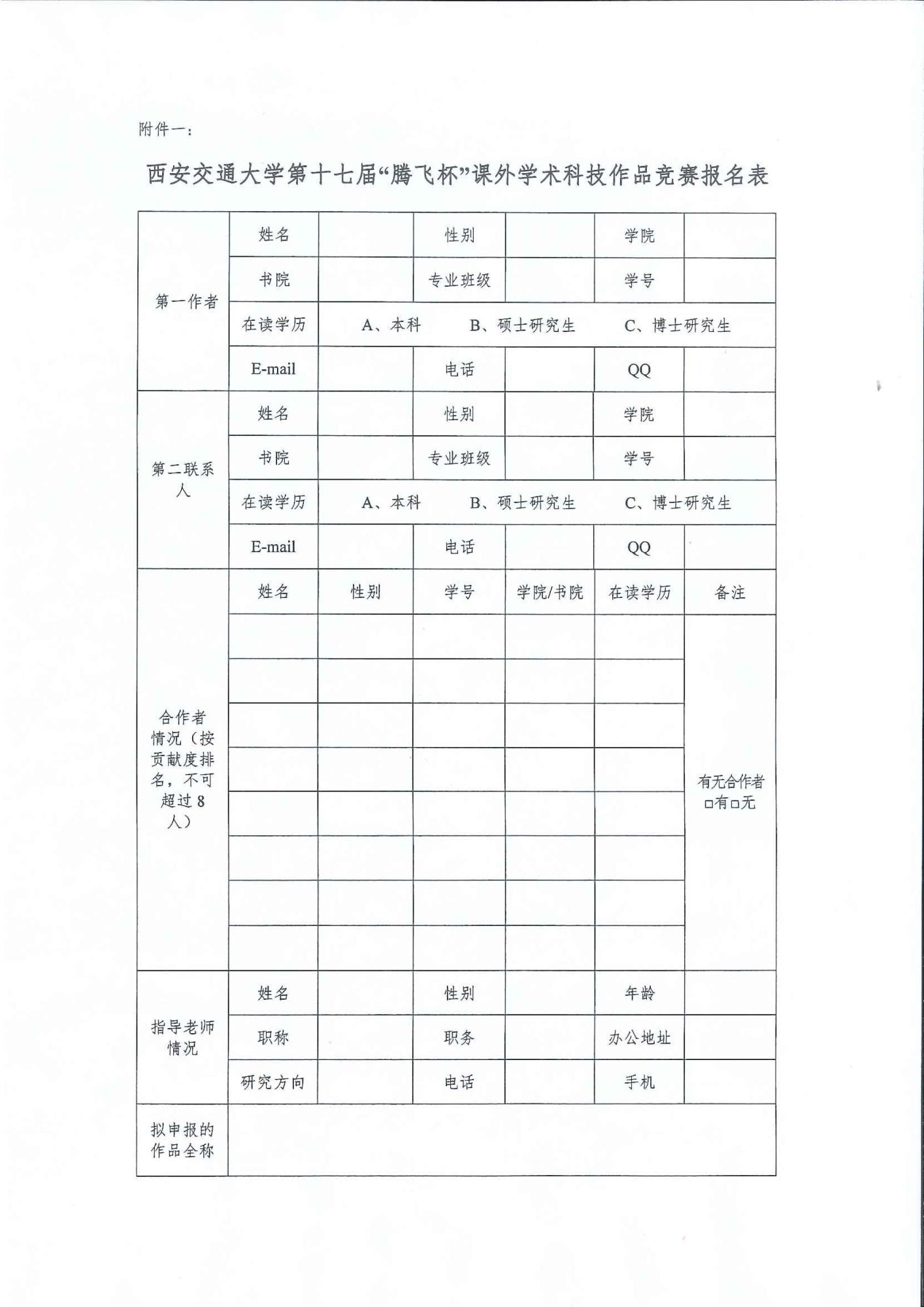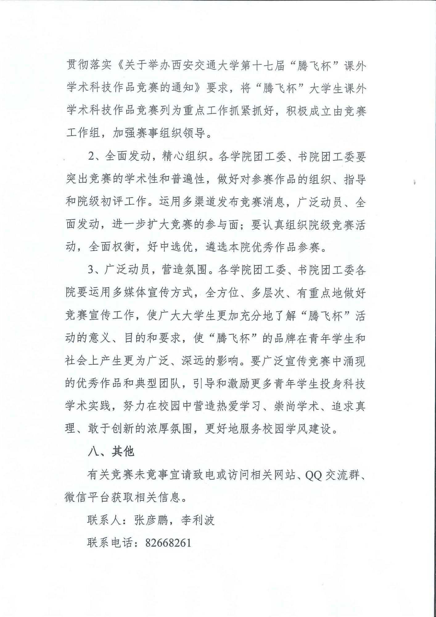 关于举办西安交通大学第十七届“腾飞杯”课外学术科技作品竞赛的通知