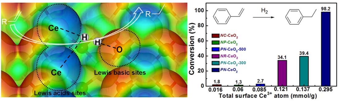 常春然副教授课题组与前沿院瞿永泉教授课题组合作,通过表面修饰工程在二氧化铈表面调控氧空穴,设计并制备出含FLPs活性位的全固相催化剂。这种特殊的活性位点由两个相邻的铈原子(Lewis酸)和氧空位相邻的一个氧原子(Lewis碱)组成。经理论和实验证实该类固体FLP催化剂对氢气分子的解离活化以及不饱和烃的加氢具有近贵金属催化剂的活性。以上通过调控氧空穴构筑固体FLP催化剂的理论基础明确,制备工艺简单,对开发其它固体氧化物基的多相FLP催化剂具有普适性指导意义。以上研究结果于5月18号发表在在国际知名期刊Nature Communications上(2016年影响因子11.33),线上老虎机游戏网站