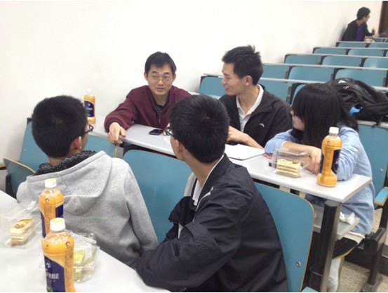精心准备的蛋糕和奶茶,各组分别行动,在教室中、凉亭下、草坪上导师与同学围坐,交流过去的学习工作经验,探讨对本学科的认识,共话对大学生活的展望。